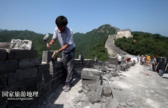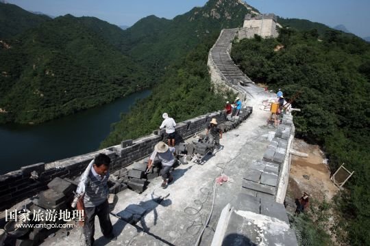 國家旅游地理 北京8月5日訊 8月4日下午,施工人員在北京懷柔西水峪古長城進(jìn)行修繕。西水峪古長城始建于明代,此次修繕部分總長960米,在嚴(yán)格保障結(jié)構(gòu)安全以及原有風(fēng)貌的前提下進(jìn)行恢復(fù)性修繕,修繕后將達(dá)到對(duì)游客開放攀登的標(biāo)準(zhǔn)。預(yù)計(jì)修繕工程將于今年10月底完成,屆時(shí)經(jīng)過專業(yè)部門驗(yàn)收后有望對(duì)外開放。 /新華社發(fā)(卜向東 攝)