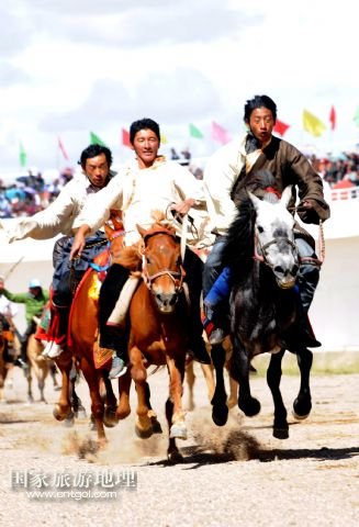 國家旅游地理 西藏那曲8月10日訊 8月10日,藏族牧民在進行跑馬比賽。當日,一年一度的藏北“恰青”賽馬藝術(shù)旅游節(jié)開幕,牧民們相聚那曲賽馬場,載歌載舞慶祝豐收。 /新華社記者唐召明攝