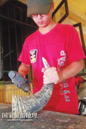 國家旅游地理 廣西柳州11月11日訊(記者陸旺楊春) 牽手漫步龍?zhí)睹琅希⒓缈勘炽逶⊥砬锱?,你會時常聽到一串串動人的音符:它時而渾厚圓潤、清脆響亮,時而輕靈縹緲、悠長凄美。不忍打破這份寂靜閑情,卻又忍不住猜想:這是何方人士,用何種樂器,吹拉彈撥出如此佳音?穿越叢林,循聲走去,瑤寨庭前,幾個年輕男女手握蘆笙,身子左搖右晃,吹得正起興。步入瑤寨一樓才發(fā)現(xiàn),這里儼然一個生產(chǎn)民族樂器的大工廠:木板、竹竿、鐵鋸、膠水、油漆,以及形狀酷似牛頭、牛腿、魚身、龍身等顏色各異、五花八門的樂器……一位正在給樂器上漆的中年人梁志榮告訴記者,這是龍?zhí)豆珗@正在籌建的民族樂器館,也是魚峰區(qū)創(chuàng)建廣西文化強區(qū)的特色景區(qū)之一,他現(xiàn)在是大龍?zhí)睹褡逅囆g(shù)團團長,研究、制作民族樂器將近20年,曾獲“廣西民間工藝大師”和“十佳民間藝人”稱號。
