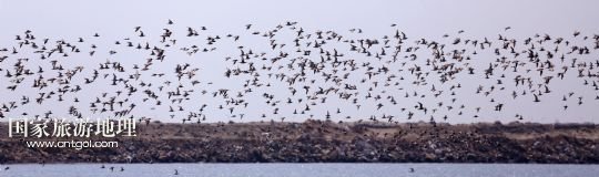 國(guó)家旅游地理 遼寧丹東5月2日訊 這是鳥群在空中飛翔(5月1日攝)。日前,遼寧省丹東市鴨綠江口濕地自然保護(hù)區(qū)迎來(lái)大批候鳥停留覓食。經(jīng)過(guò)中外鳥類專家在鴨綠江口濕地大約40公里范圍內(nèi)7個(gè)分點(diǎn)的同步調(diào)查發(fā)現(xiàn),共36種近14萬(wàn)只鳥類云集于此,這些候鳥在鴨綠江口濕地經(jīng)過(guò)約1個(gè)月的休整、補(bǔ)充體能后,將繼續(xù)北上到俄羅斯西伯利亞和美國(guó)的阿拉斯加等地繁育后代。