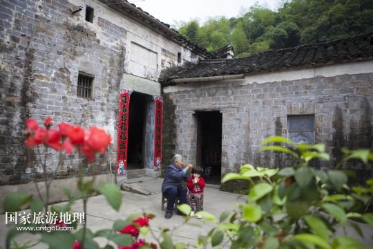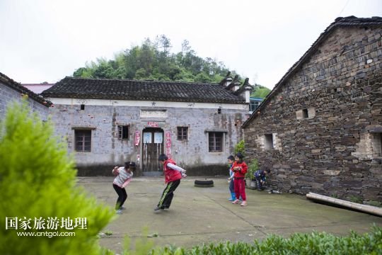 國(guó)家旅游地理 江西九江5月12日訊 5月12日,孩子們坐在土目源村的老房子前玩耍??沼牡纳焦龋幌⒌南?,斑駁的石墻,古樸的石屋。在江西省北部山區(qū),有一座石屋山居的古村落——都昌縣大港鎮(zhèn)土目源村。