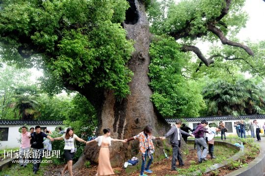 國家旅游地理 江西上饒5月18日訊 5月17日,游客在江西省德興市海口鎮(zhèn)??诖迩旯耪僚酝嫠!=魇〉屡d市??阪?zhèn)海口村有一棵1800多歲“高齡”的巨型古樟樹,歷史上曾遭受過多次雷擊、火災(zāi)等,其中最近的一次發(fā)生在2010年10月1日,由于村內(nèi)孩童進(jìn)入可容納幾十人的樹洞內(nèi)玩耍,不慎引發(fā)火災(zāi),致使大火從樹洞里燒起,讓這棵千年古樟幾近滅頂。此后,當(dāng)?shù)卮迕褡园l(fā)捐款近6萬元,請來有關(guān)專家救治。經(jīng)過近4年的精心護(hù)救,如今這棵千年古樟再度逢春,枝繁葉茂,吸引了各方游客前來觀賞。 /新華社發(fā)(卓忠偉 攝)