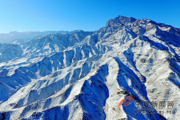 1月24日,寒潮控制下的銀川藍天通透,剛剛經(jīng)歷降雪的賀蘭山拜寺口、蘇峪口一帶銀裝素裹。巍巍賀蘭山在白雪、藍天的映襯下分外妖嬈。 寧夏新聞網(wǎng)記者 祁瀛濤 攝