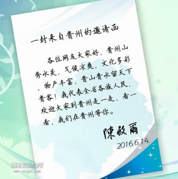貴州省委書記陳敏爾網(wǎng)絡(luò)邀請大家到貴州旅游做客(圖)